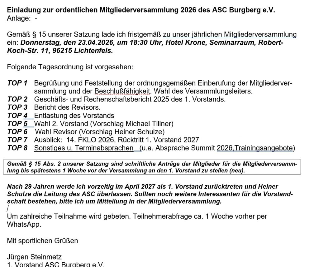 VonASC BurgbergSiehe unter „Mitglied werden“ / Satzung